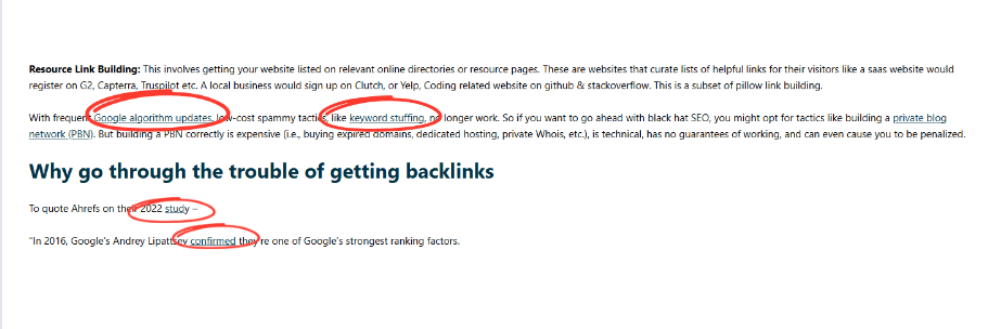 • If you want the reader to trust your content link back to articles that prove your claims with data. A good example of this is “As as seen and Forbes Advisor Organic clicks make up 45.1% of clicks from search results.”